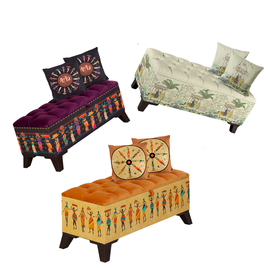 Siyah Afrika Desenli Sandıklı Puf +2 Kırlent