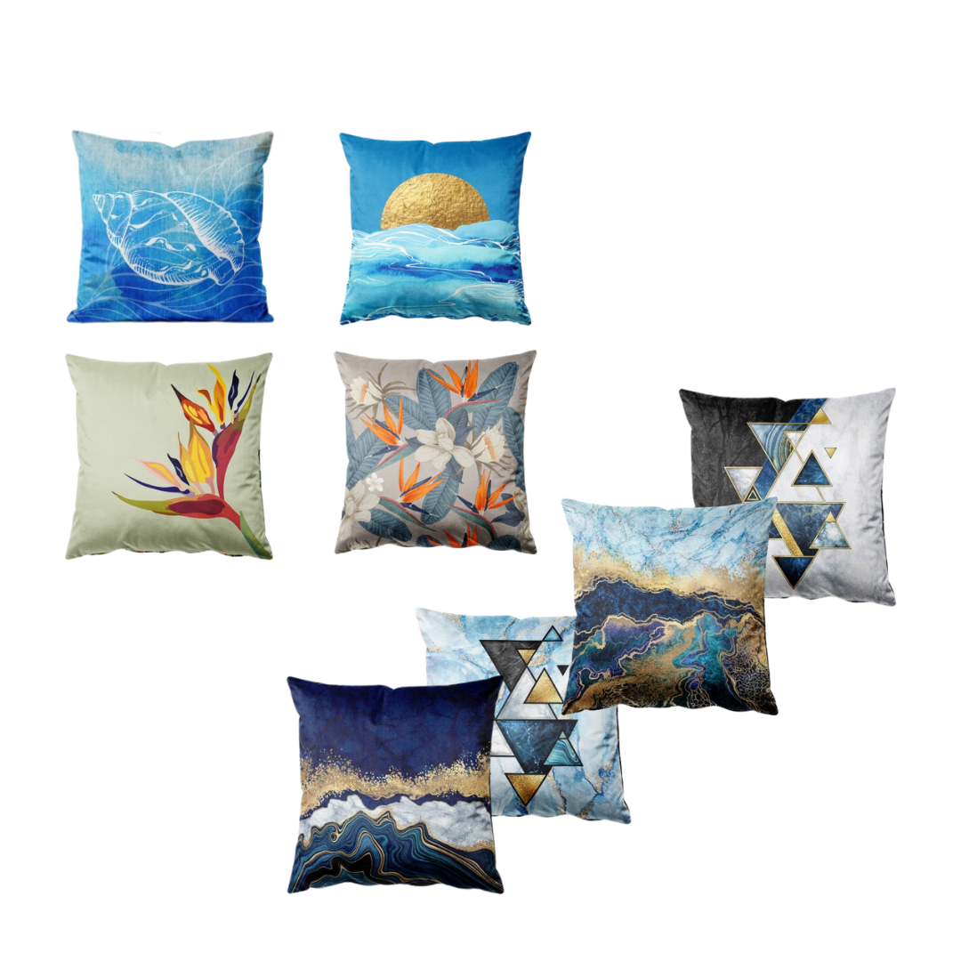 Altın Yapraklı Mermer Desenli 4'lü Kırlent Kılıfı