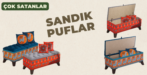 Evlerinize pratik bir depolama çözümü sunan, aynı zamanda şık bir oturma alanı yaratan sandık puflarımızla yaşam alanlarınızı dönüştürün🥳